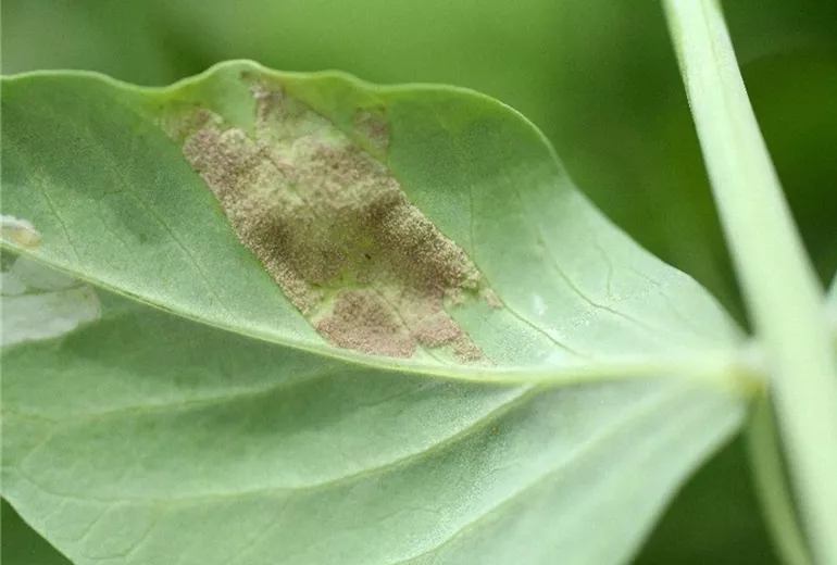 Der Falsche Erbsenmehltau (Peronospora viciae) gehört zur Gruppe der Falschen Mehltaupilze, die vor allem bei feuchter Witterung verstärkt auftreten können. Die Sporen sind in der Lage über mehrere Jahre im Boden zu überdauern.