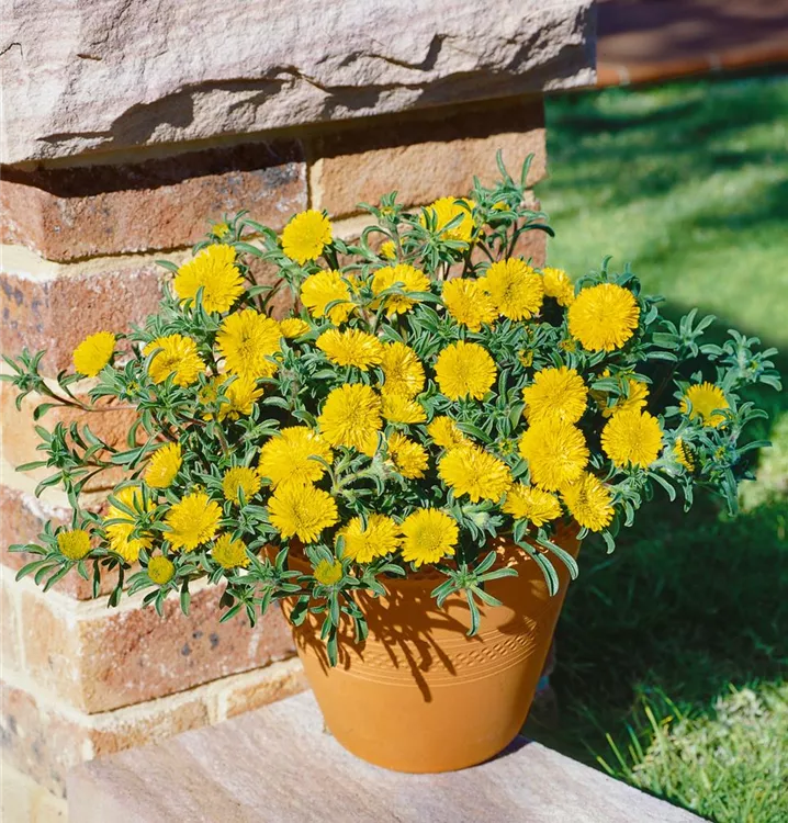 Der Goldtaler (Asteriscus maritimus) ist eine beliebte Pflanze für den Balkon. Die unzähligen Blüten erscheinen, je nach Sorte, in verschiedenen Farben die ganze Saison hindurch. Ein sonniger Standort und ein durchlässiges Substrat werden bevorzugt.