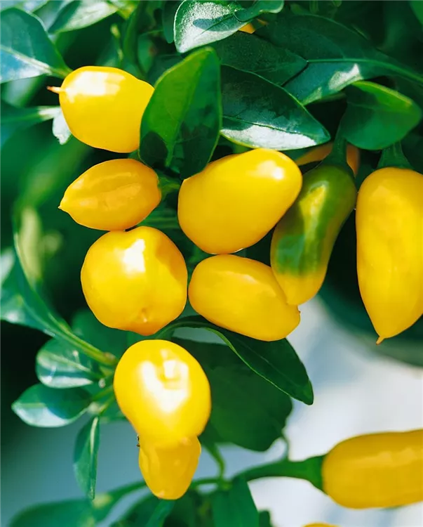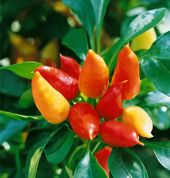 Die Paprika 'Karneval' (Capsicum annuum) bildet Früchte, die aromatisch schmecken und bereits ab Juli geerntet werden können. Für das optimale Wachstum der Paprika 'Karneval' werden ein sonniger Standort und durchlässiger, nährstoffreicher Boden benötigt.