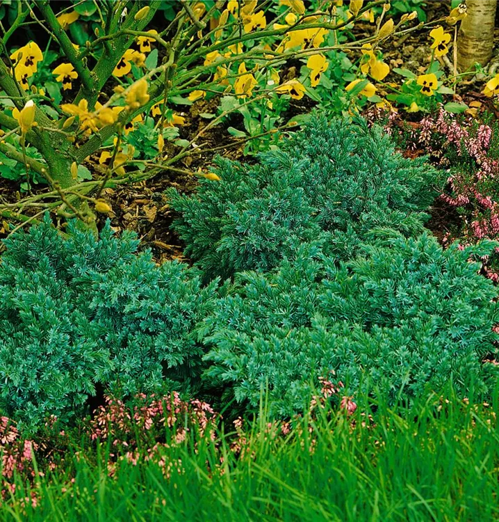Besonders dekorativ sind die blauen Zapfen von Juniperus squamata. Diese erscheinen ab August.