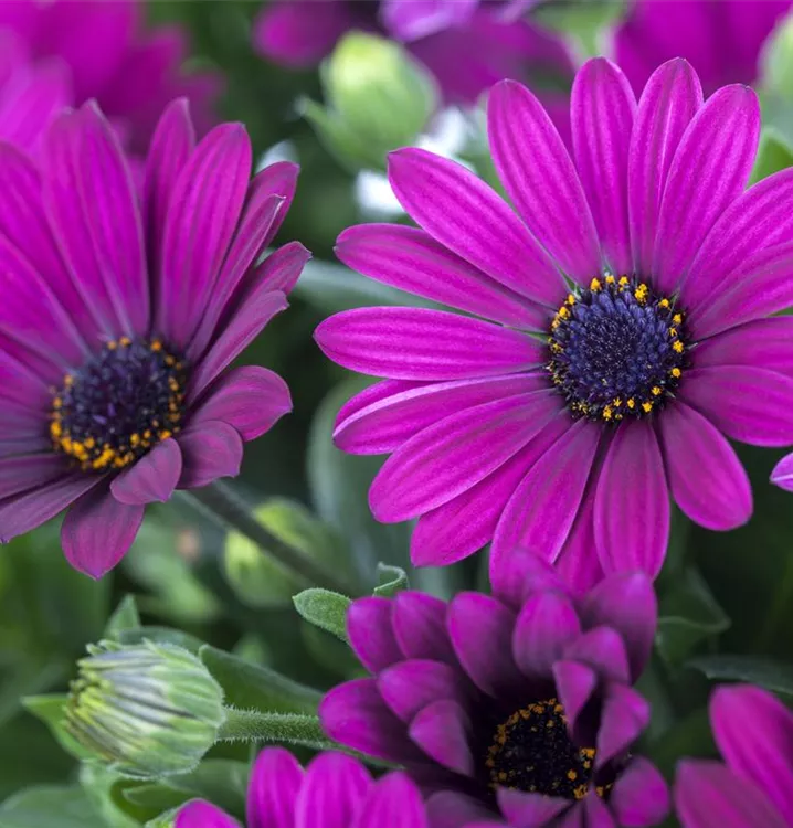 Das Kapkörbchen (Osteospermum ecklonis) ist eine beliebte Pflanze für den Balkon. Die unzähligen Blüten erscheinen, je nach Sorte, in verschiedenen Farben die ganze Saison hindurch. Ein sonniger Standort und ein durchlässiges Substrat werden bevorzugt.