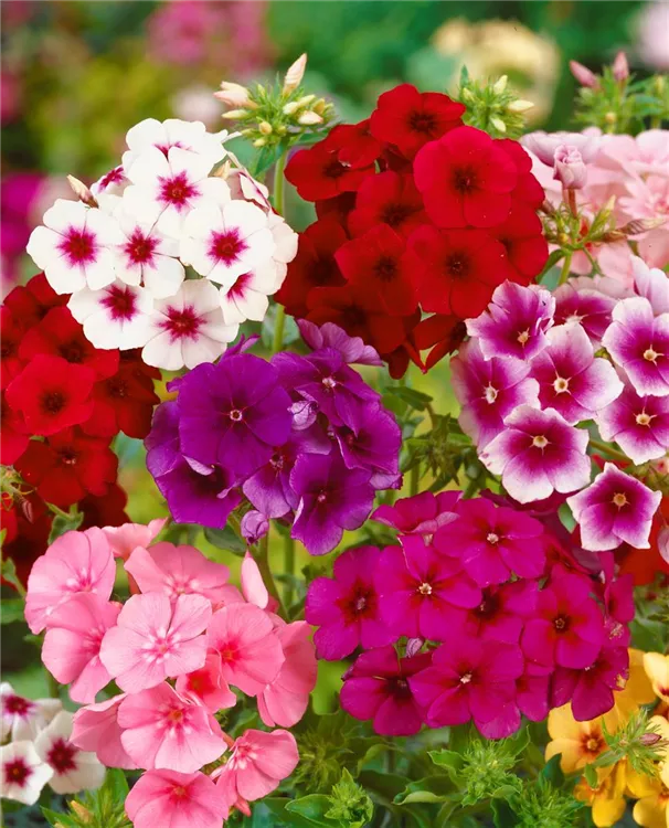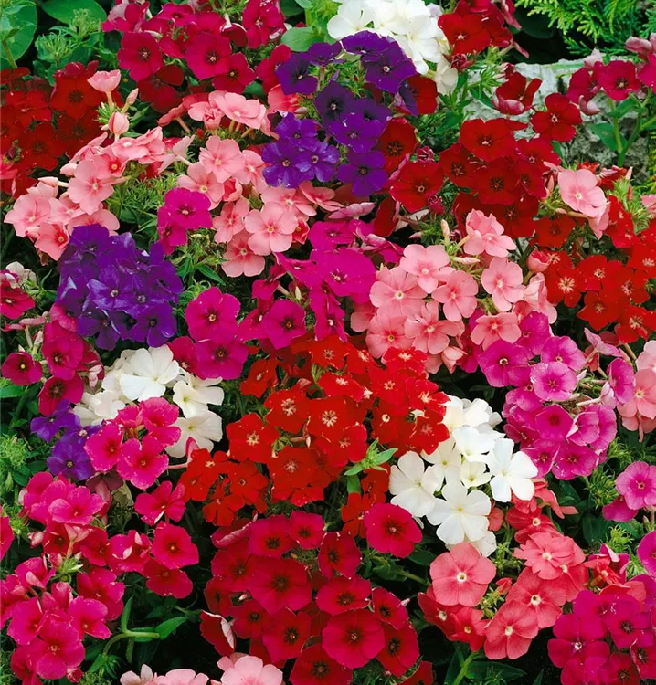 Der Sommer-Phlox (Phlox drummondii) ist eine beliebte Pflanze für den Balkon. Die unzähligen Blüten erscheinen, je nach Sorte, in verschiedenen Farben die ganze Saison hindurch. Ein sonniger Standort und ein durchlässiges Substrat werden bevorzugt.