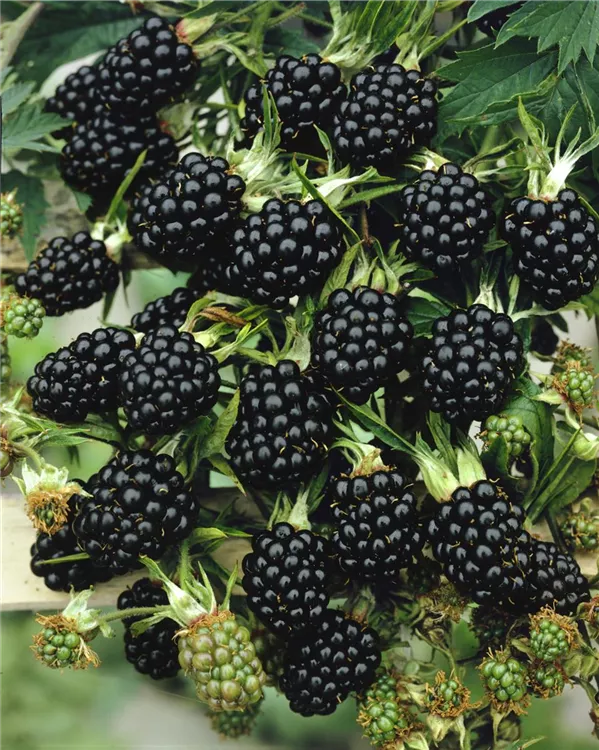 Die Brombeere (Rubus fruticosus) bildet schwarze Beeren. Diese sind aromatisch, fruchtig im Geschmack. Für eine ertragreiche Ernte ab August schaffen durchlässiger, humoser, nährstoffreicher Boden und ein sonniger bis schattiger Standort optimale Bedingungen. Auch ihre weißen Blüten sind eine schöne Erscheinung.