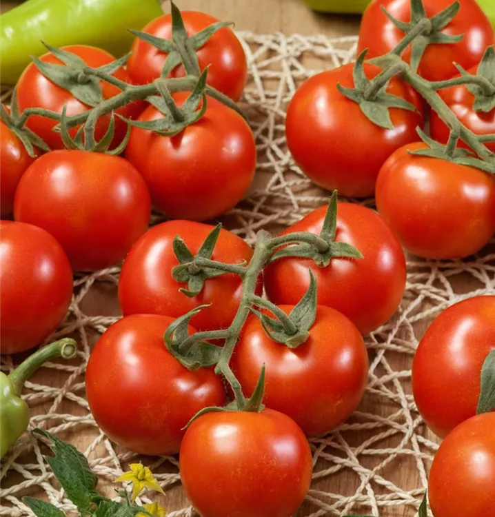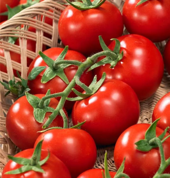 Die Tomate (Solanum lycopersicum) bildet Früchte, die aromatisch schmecken und bereits ab Juli geerntet werden können. Für das optimale Wachstum der Tomate werden ein sonniger Standort und durchlässiger, nährstoffreicher Boden benötigt.