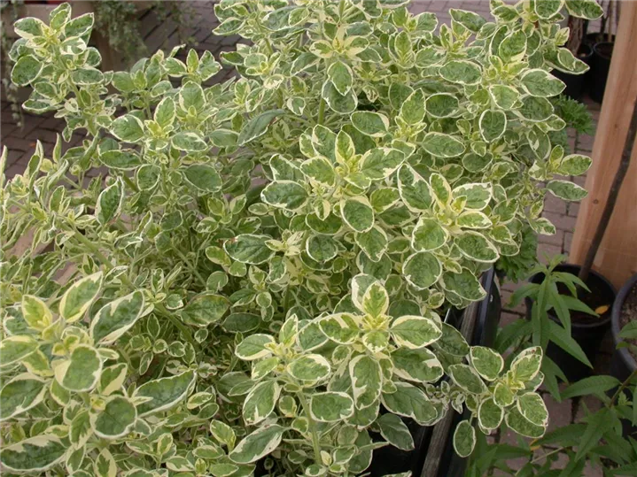 Das Weißbunte Strauch-Basilikum (Ocimum basilicum) ist eine Kräuterpflanze mit einem würzigen, aromatischen Geschmack. Seine panaschierten Blätter sind eiförmig, lanzettlich und gewellt. Für das optimale Wachstum des Weißbunten Strauch-Basilikums werden ein sonniger Standort und durchlässiger, nährstoffreicher Boden benötigt.