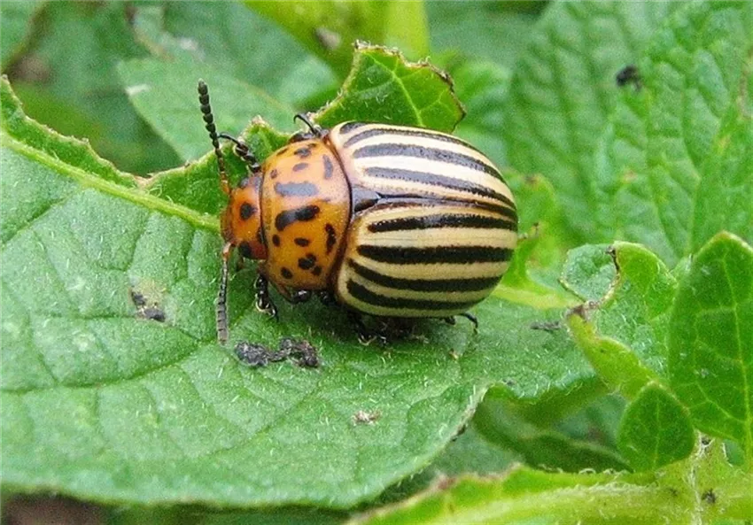Der Kartoffelkäfer (Leptinotarsa decemlineata) überwintert im Boden. Im Frühjahr beginnt er mit seiner Fraßtätigkeit. Die orangegelben, ovalen Eier werden in Gruppen an die Blattunterseite gelegt. Aus ihnen schlüpfen die gefräßigen Larven.