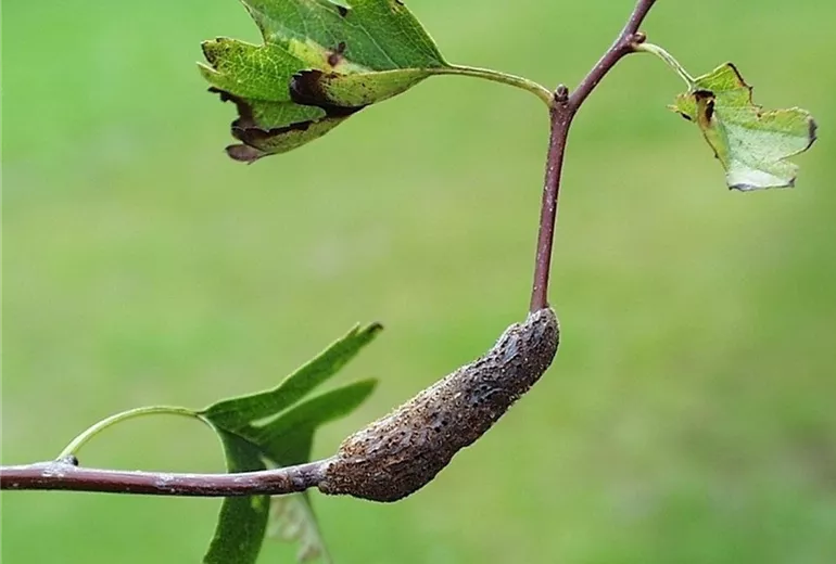 Der Rost, der auch als Weißdorngitterrost (Gymnosporangium clavariaeforme) bezeichnet wird, hat einen ähnlichen Lebens-Zyklus wie der Birnengitterrost.