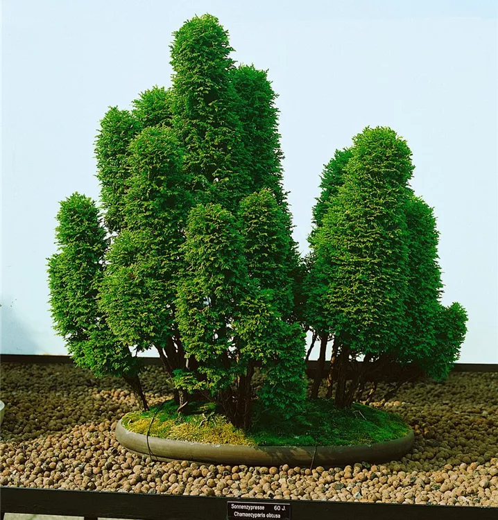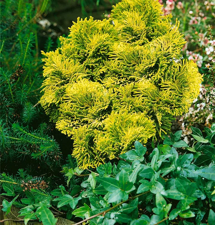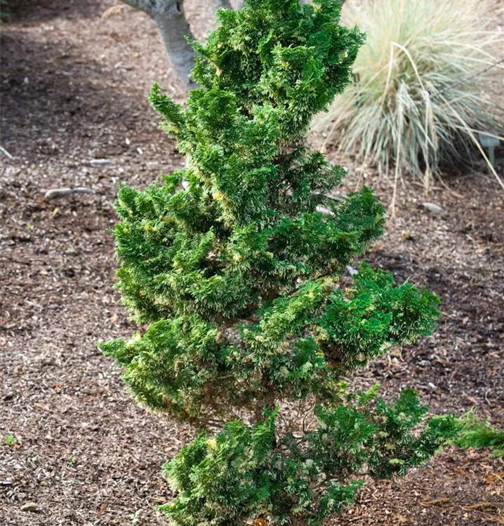 Die Muschelzypresse (Chamaecyparis obtusa) ist ein Gehölz, welches rundlich wächst und gewöhnlich eine Höhe von ca. 2 m und eine Breite von ca. 2 m erreicht. Dieses Gehölz ist gut frostverträglich. Sie bevorzugt durchlässigen, humosen Boden in sonniger bis halbschattiger Lage.