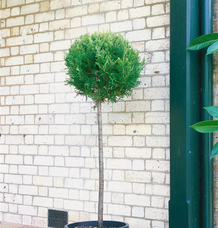 Gelbe Baumzypresse 'Castlewellan Gold' ist ein aufrecht und schlank wachsender Baum mit geschlossener Krone. Sie erreicht gewöhnlich eine Höhe von 7 - 15 m und wird ca. 2 - 3 m breit.