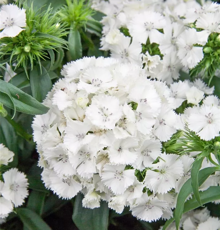 Die Garten-Bart-Nelke (Dianthus barbatus) ist eine buschige Staude, die, je nach Sorte, radförmige Blüten in verschiedenen Farben bildet. An einem sonnigen Standort mit durchlässigem, nährstoffreichem Boden erreicht sie gewöhnlich eine Höhe von ca. 60 cm und wird ca. 50 cm breit. Die Garten-Bart-Nelke ist gut frostverträglich.