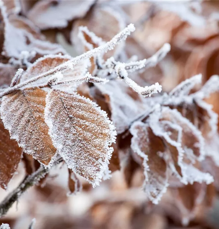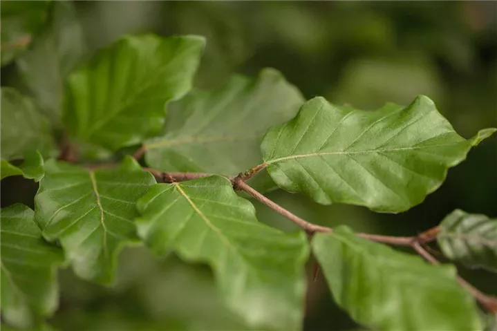 Die sommergrünen Blätter der Rotbuche sind mittelgrün, eiförmig, wechselständig, gewellt. Diese sind etwa 5 - 10 cm groß. Rotbuche zeigt sich leuchtend goldgelb im Herbst.