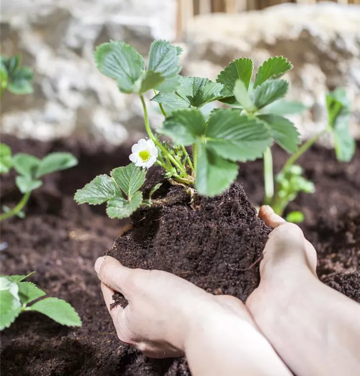 Die Erdbeere (Fragaria) An einem sonnigen Standort mit durchlässigem, humosem Boden erreicht sie gewöhnlich eine Höhe von ca. 20 cm und wird ca. 1 m breit. Die Erdbeere ist gut frostverträglich.