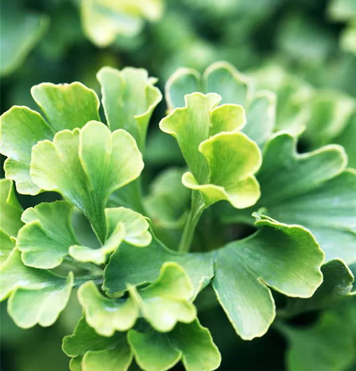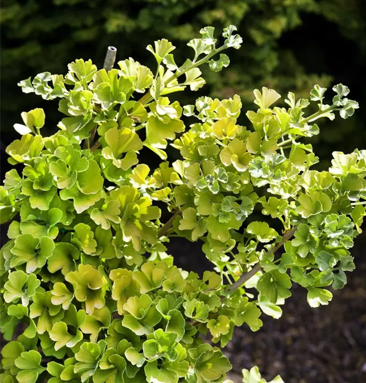 Der Fächerblattbaum 'Mariken' (Ginkgo biloba) ist ein Kleinstrauch, welcher kugelförmig wächst und gewöhnlich eine Höhe von ca. 1,5 m und eine Breite von ca. 2 m erreicht. Seine fächerförmigen, matten, ledrigen Blätter haben eine mittelgrüne Färbung. Sie verwandeln sich im Herbst in ein leuchtendes Gelb. Dieses Gehölz ist gut frostverträglich. Er bevorzugt humosen, nährstoffreichen, sandigen Boden in sonniger bis halbschattiger Lage.