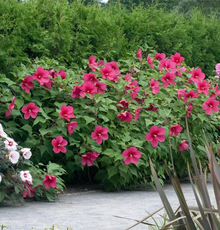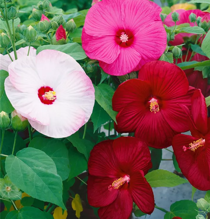 Je nach Sorte, bildet Hibiscus moscheutos Blüten in verschiedenen Farben.
