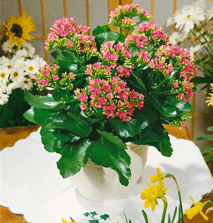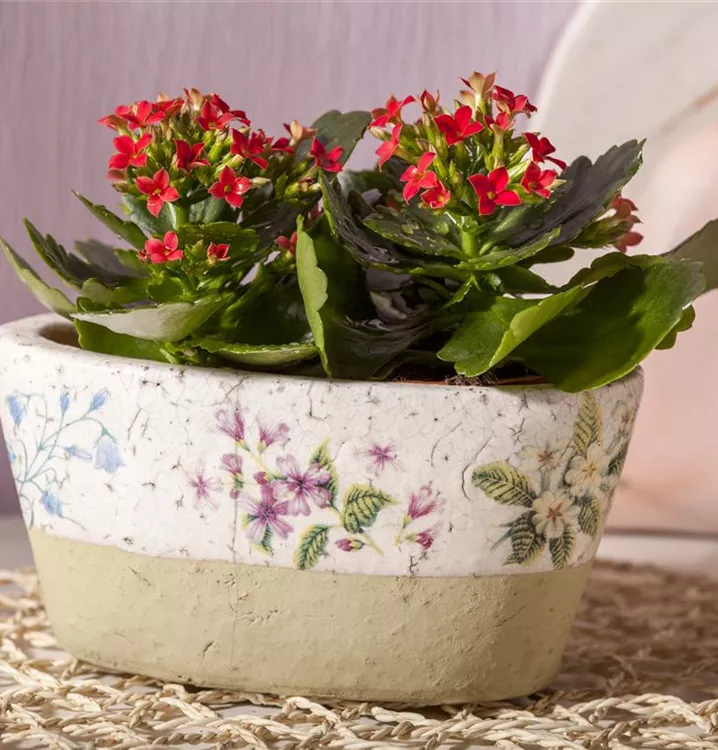 Das Flammende Käthchen (Kalanchoe blossfeldiana) blüht über Monate hinweg. Je nach Sorte, erscheinen die dekorativen Blüten in den Farben Rot, Violett, Weiß und Rosa. Bevorzugt wird ein heller Standort und eine durchlässige Erde.
