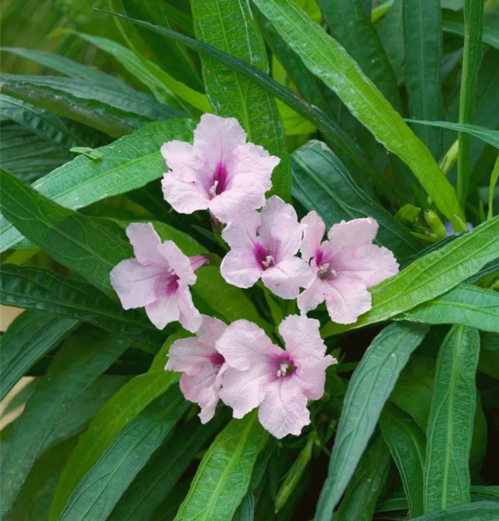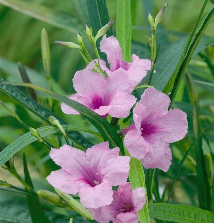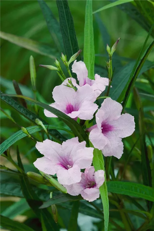 Die Wüstenpetunie (Ruellia brittoniana) ist eine beliebte Pflanze für den Balkon. Die unzähligen Blüten erscheinen, je nach Sorte, in verschiedenen Farben die ganze Saison hindurch. Ein sonniger bis halbschattiger Standort und ein durchlässiges Substrat werden bevorzugt.