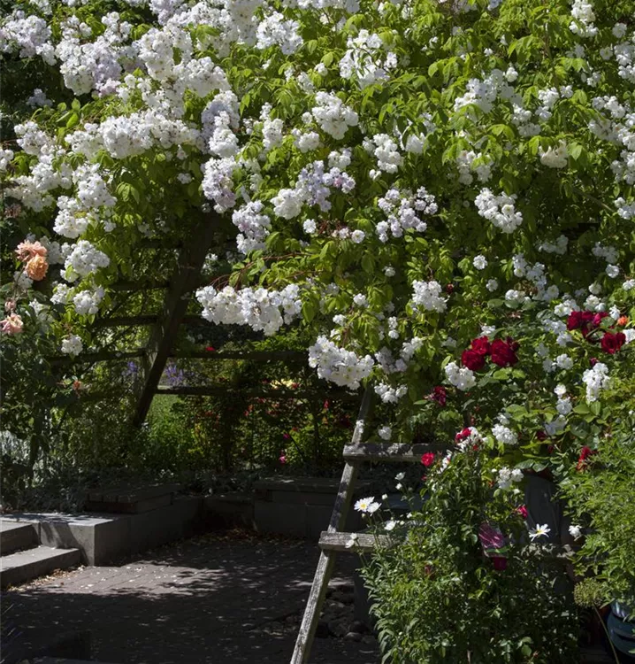 Die Kletterrose setzt schöne Akzente gemeinsam mit:
